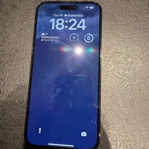 Telefonen er i helt strøken stand – ingen synlige riper eller sprekker, alltid brukt med deksel og skjermbeskytter. Batterikapasiteten er fortsatt på 100%, batteri byttet i juli.