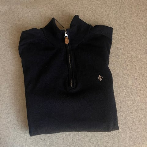 Pent brukt Morris mørkeblå merinoull str S. Høyhalset genser.