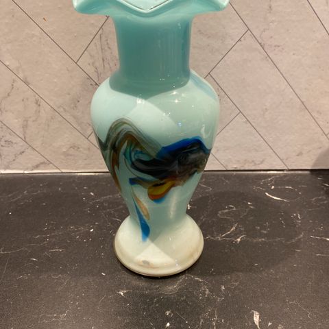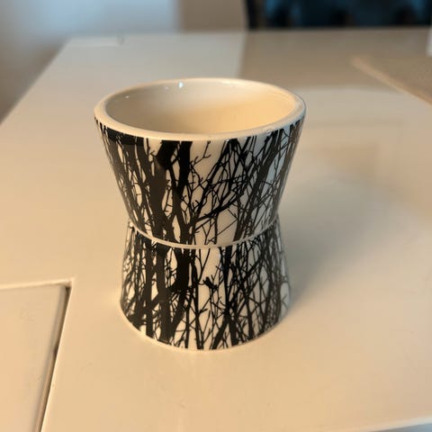 Selger en vintage vase i sort og hvit. Porselen fra Portugal
