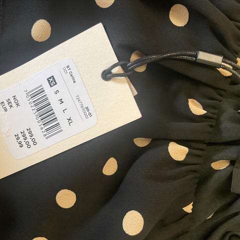 Sminkemerke ved halsen. Kan nok vaskes vekk. Elastan og polyester. Kan ikke sendes med instabox