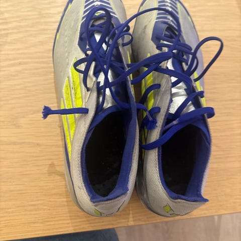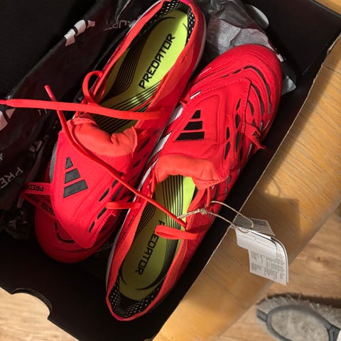 Adidas X 18.1 fotballsko i størrelse 44 2/3. Skoene er hvite med svarte og røde detaljer. De har knopper under sålen for bruk på gressbaner. Materialet er pustende og designet for fotballspillere.