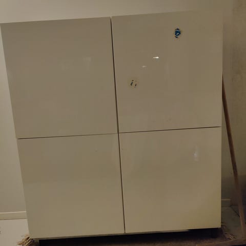 Det følger også med helt ny skapdør og tilhørende hengsler og dørhåndtak, samt skruer og knotter.