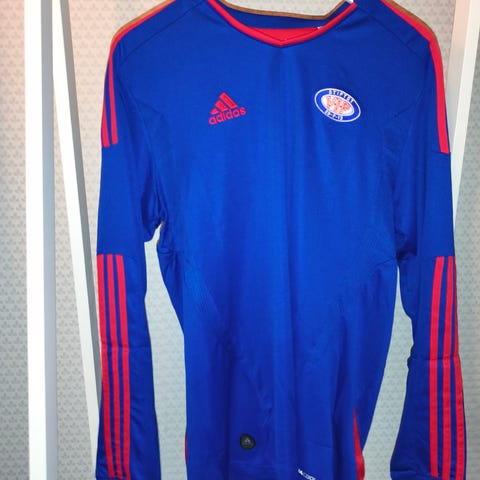 Adidas fotballjakke i størrelse XS, unisex modell. Jakken er blå med røde detaljer og har glidelås foran. Egnet for fotballaktivitet.Vålerenga.