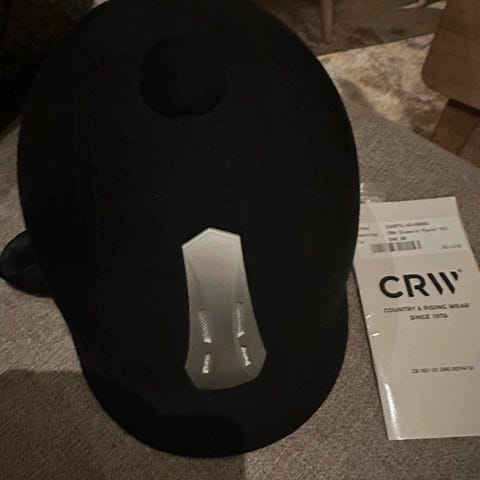 CRW Ridehjelm i svart farge. Hjelmen har justerbare stropper og polstret innside for komfort. Egnet for ridning og beskytter hodet under aktivitet. Str er S som vil si 51-54