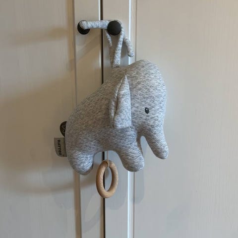 Baby uro med hengende myke dyrefigurer i gult og brunt. Passer til å henge over babyseng eller lekegrind for visuell stimulering. Laget av tekstilmaterialer med myke detaljer.. den kan også spille musikk og roteres.