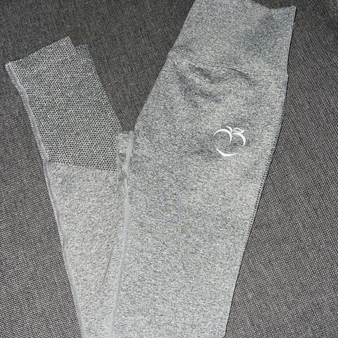 Peach Tights i størrelse XS i grå og blå farge. Laget for komfort og bevegelsesfrihet, egnet til trening eller hverdagsbruk. Lite brukt, selges for 200kr stk