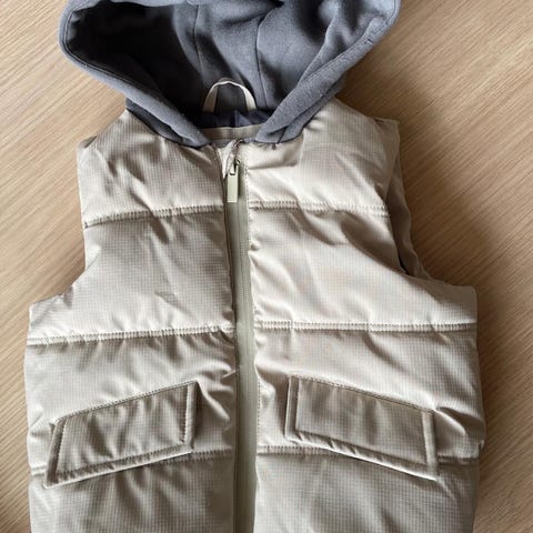 KappAhl barnevest i størrelse 92 for gutt, i svart farge. Vesten er polstret med et glatt ytterstoff og har glidelås foran. Den er designet for å gi ekstra varme og komfort til barn i denne aldersgruppen.