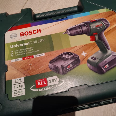 Skrumaskin fra Bosch sin "Power 4 all"-verktøyserie, med batterier som passer mange andre maskiner som bruker samme batteri.