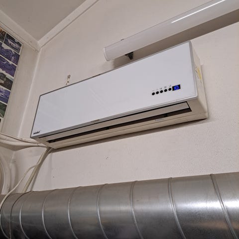 Vaillant VWL 55/3 A200 varmepumpe med en effekt på 5 kW. Enheten er egnet for boligoppvarming, som vannbåren gulvvarme eller radiatoranlegg. Leveres med tilhørende rørdeler og kontrollpanel. Produktet har tekniske spesifikasjoner for trykk og temperatur som vist på merkelappen.