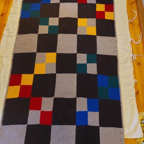Håndstrikket, nytt , i 100 % ullgarn med fleece bakside