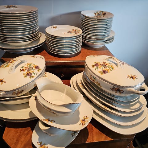 Vakkert vintage håndmalt serveringsbrett. Noen synlige bruksmerker. Kan evt sende med Post Nord for kr 69.