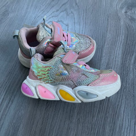 Ponny barnesko i størrelse 22 for jenter. Skoene er rosa med detaljer i mørkere nyanser og har borrelåsfeste for enkel påkledning. Materialet består av tekstil og syntetiske komponenter. Sålene har godt mønster for grep og skoene er egnet for daglig bruk.