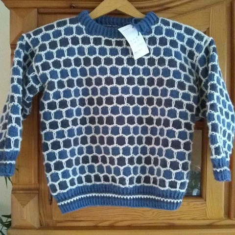 Ny håndstrikket genser i 100% merino babyull til salgs - str. 6 år