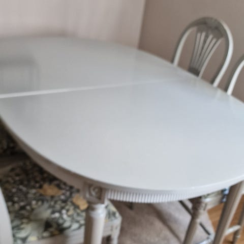 Hvitmalt stort tungt spisebord. Hentes Hønefoss sentrum bakkeplan.