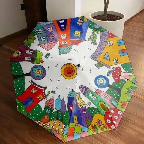 Kjempestor og flott regnbue-paraply