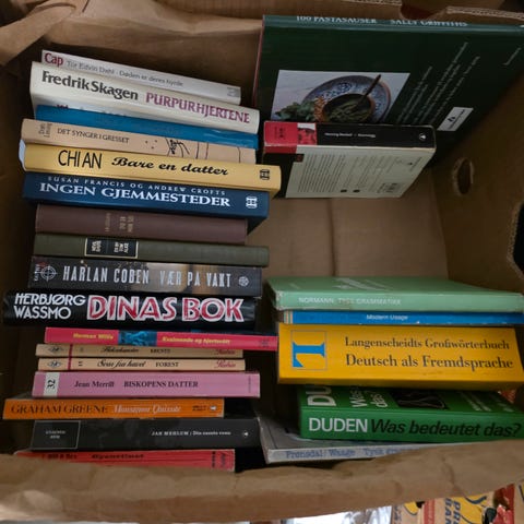 Selger diverse bøker til 20kr pr stykk.
