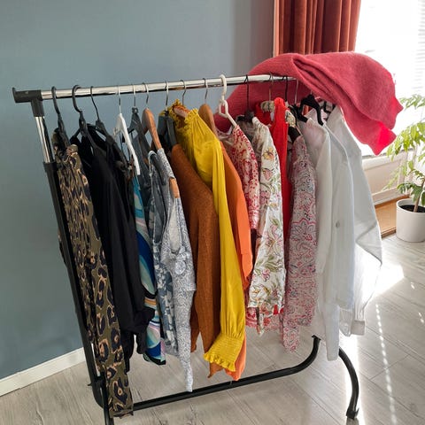 Klespakke str M bestående av en grønn dress (ubrukt men mangler 1 knapp; ny pris 1500), hvit dressjakke, jakke i brunt skinn, en tskjort, en topp, 2 bukser og en silke pysj. Det meste er ubrukt og alt er uten skader, merker og flekker.