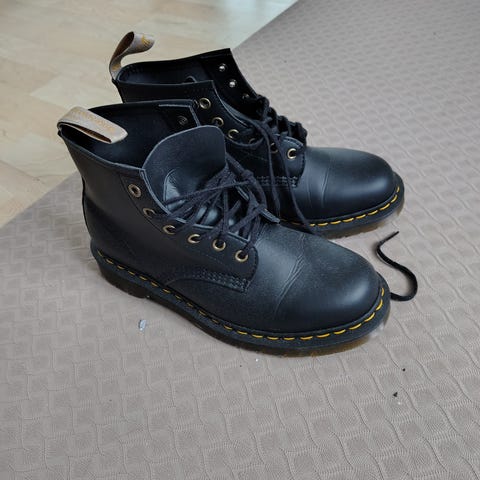 Dr. Martens støvler i størrelse 40 i cherry red. Nesten ubrukt men har bittesmå skraper i front som jeg er usikker om det er faktiske skraper eller bare litt skittent. De er kjøpt noen år siden men brukt bare et par ganger og er i fantastisk stand.