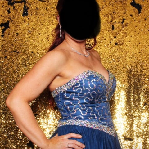 Blå ballkjole leies ut