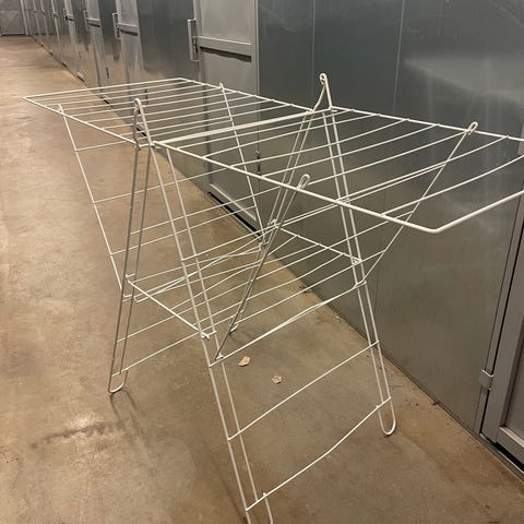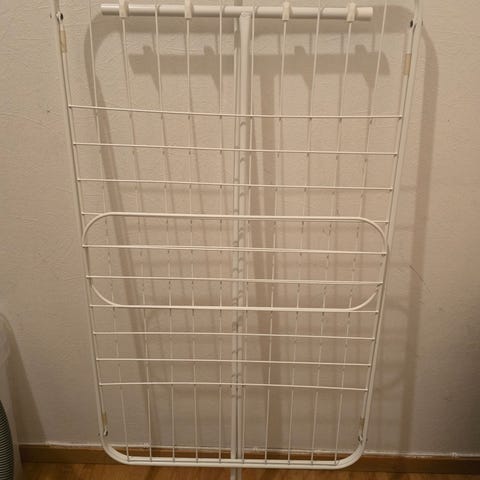 Tørkestativ med god plass til å tørke klær. Tørkestativet kan bli til en kles hylle til å legge klær og annet i.