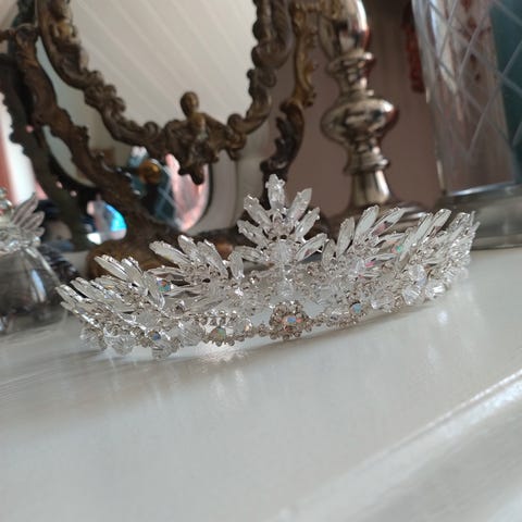 Brukt i ett bryllup, kronen er regulerbar med rhinestone-slør og ekstra blomster for reperasjon.