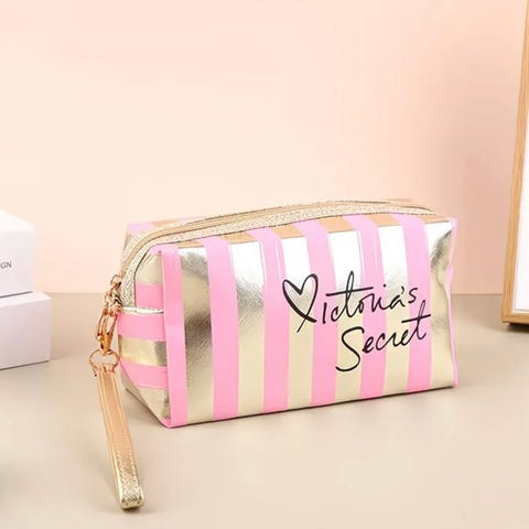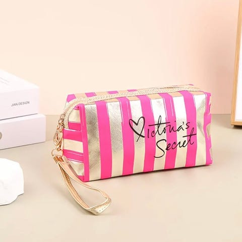 About the product: Victoria's Secret Signature Stripe Wedge Cosmetic Bag Makeup Bag