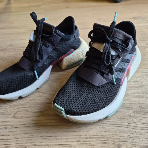 2/3. Laget i pustende materiale med snøring for justerbar passform. Egnet for daglig bruk og lett trening. Pent brukt, men fremstår fortsatt som ny i bruk.