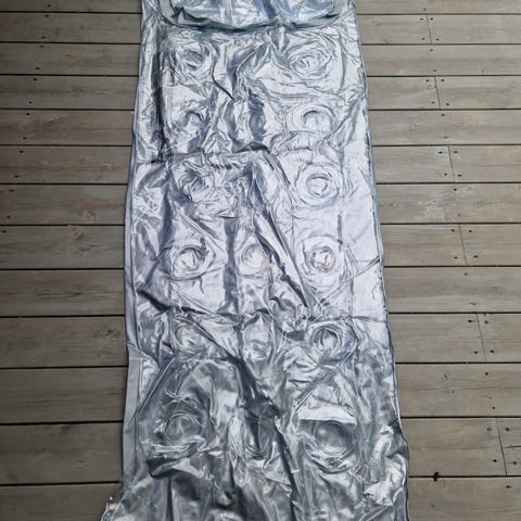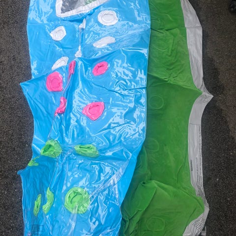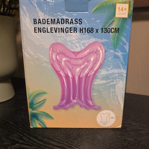 Bademadrass i orange og gjennomsiktig, perfekt til sydenferien eller å plaske i bassenget/på stranda.