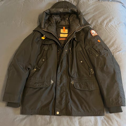 Men's Long Bear Hooded Parka fra Parajumpers er en lang og varm dunfylt jakke for herrer. Strl L, ingen bruksmerker.
