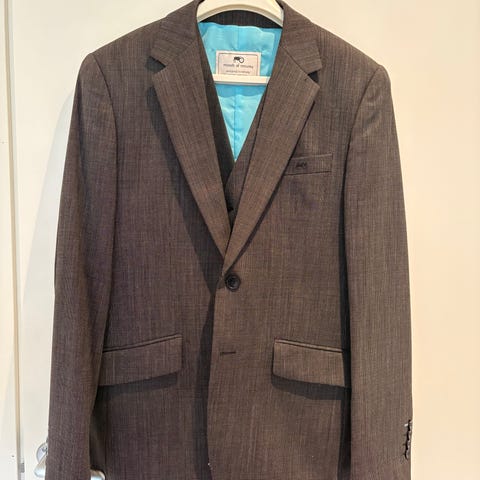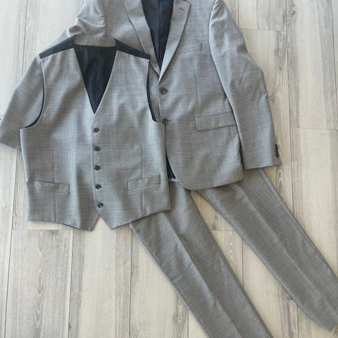 Flott dress fra Moods of Norway i fargen grå. Består av jakke og vest i str 48 og bukse i str 46. Dette tilsvarer størrelse S/M.