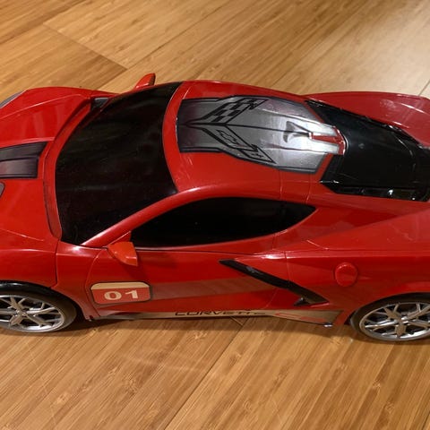 Selger en uåpnet lekebil fra MicroMachines. Den kan gjøres om fra lekebil til by ved å åpne bilen.
