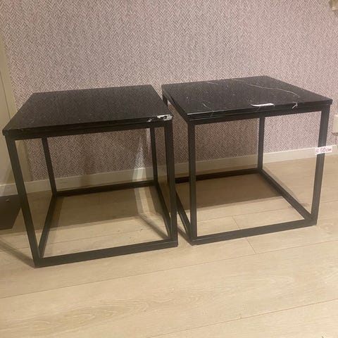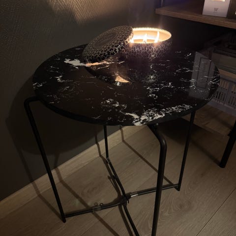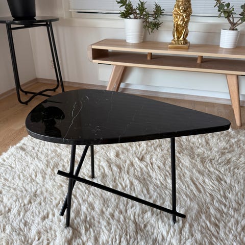 Pent sidebord med marmorplate. Understell i metall. Ny pris 1.490,- (Utsolgt fra Bokklubben)