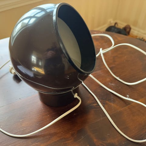 Som er ekstra kuriositet er det et klistremerke som viser at lampen har vært eid av pianostemmer Hans-Christian Hagen fra Bærum.