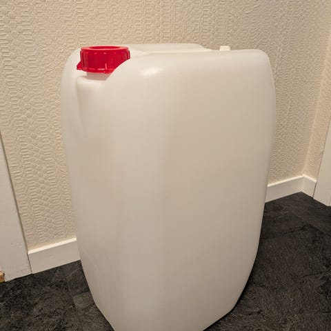 Brukte 25 liter kanner, 220 liter plast tønner og stål 200 liter fat gis bort. Kan ikke brukes til vann.