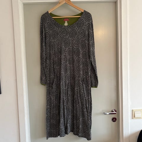 Perfekt, klassisk hverdagskjole fra Gudrun Sjøden . Behagelig tykk strikket organisk bomull. Kjolen går til under kneet på meg som er 180cm. Pent brukt. Tykk i stoffet. Masse stretch. Denne er veldig pent brukt. Det er en topp kjole og super kvalitet. Fremstår som ny.