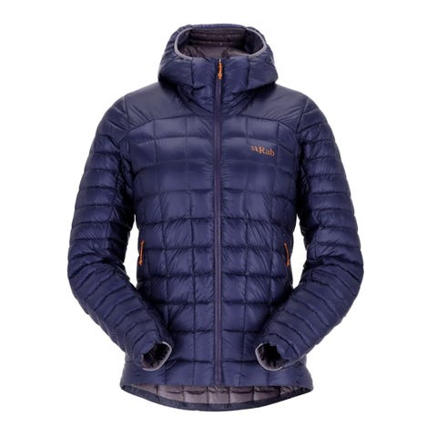 Ultralettvekt og nedpakkbar dunfylt fjelljakke med soneinndelt elastisk konstruksjon