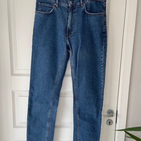 Weekday tape jeans i blå farge, med midjevidde W32. Laget av denimmateriale, designet for menn.