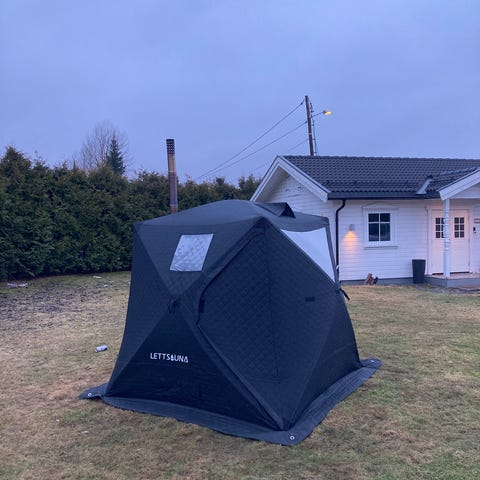 Du vil bli overrasket over hvor enkelt dette teltet er å sette opp, og hvor kort tid det tar å få badstutemperatur. Alle som har leid så langt, har vært strålende fornøyde!