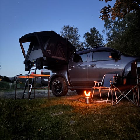 Alt får normalt plass i en vanlig bil med nedslått baksete. De største delene som ovn, telt og benker i sedertre, ligger i egne bager slik at de er enkle å bære med seg den siste biten.