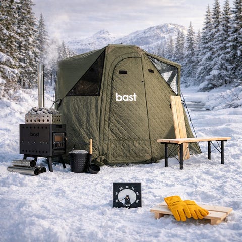 Se Bast Sauna for mer info, og også gode instruksjonsvideoer for hvordan sette opp og ta ned teltet: https://bastsauna.com/pages/vad-ar-ett-bastutalt