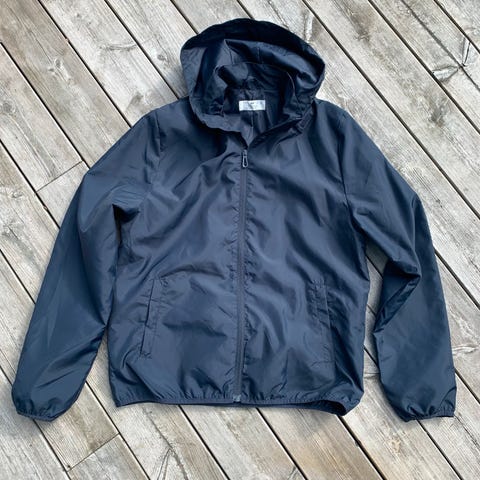 Hybridjakke i trikot og delvis vindtett funksjonsmateriale som er designet til å beskytte mot vind. Avtakbar hette i dobbel kvalitet, høy krage og glidelås foran med hakebeskyttelse. Vatterte partier foran og bak for å holde varmen. Lange ermer med mansjett og tommelhull som holder varme til håndledd og hender. Lommer foran med glidelås for trygg oppbevaring. Delvis foret.