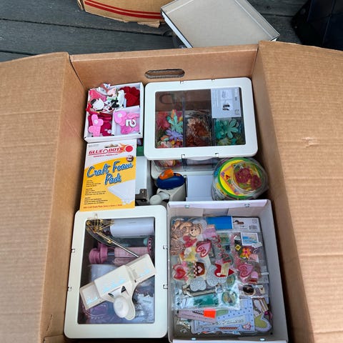 Trillebag gir scrapbooking. Baggen har flere lommer, bærehåndtak og trillefunksjon med teleskophåndtak. Innvendig rom er romslig med sort fôr.