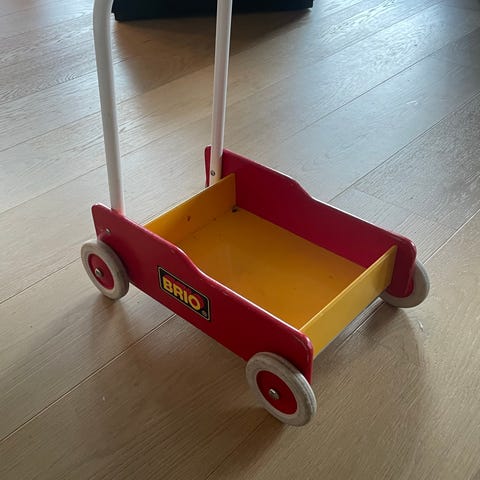 Godt brukt BRIO Gåvogn. Noen synlige bruksmerker, men ellers i tipp topp stand og fungerer slik den skal.