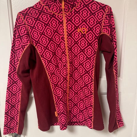 Kari Traa Andre jakker i blå farge, størrelse M for dame. Jakken har hette, flere lommer med klaff og knapper, samt justerbar midje. Materialet er egnet for utendørs bruk og gir beskyttelse mot vær og vind.