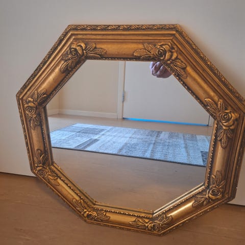 Speil 70 x 50 med dekorativ kant i sølv med sjøstjerner og skjell.