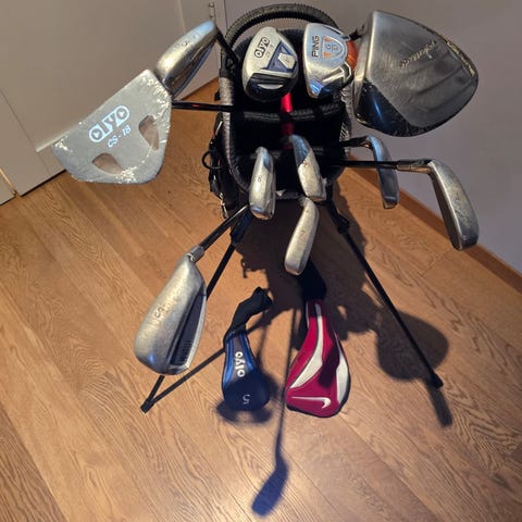 Et eldre og godt brukt golfsett som passer godt som et startsett