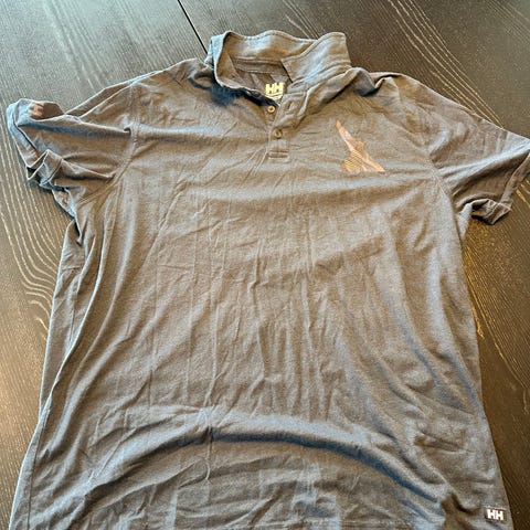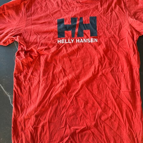 Helly Hansen T-skjorte for herre i størrelse L. T-skjorten er hvit og har HH-logo på brystet. Laget av bomullsmateriale.