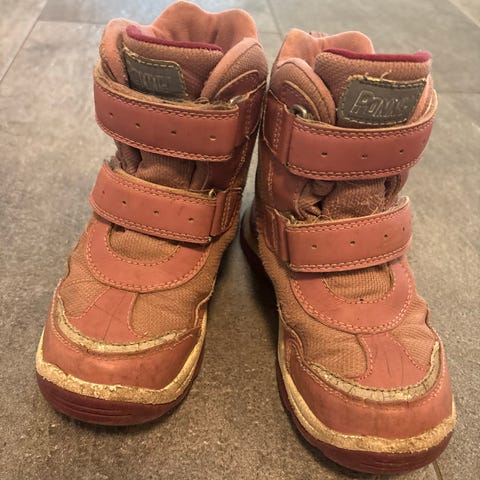 Ponny barnesko - vintersko i størrelse 22, egnet for både gutter og jenter. Skoene er røde og har borrelås for enkel justering og påkledning. Materialet og designet er tilpasset små barns behov for komfort og støtte.
