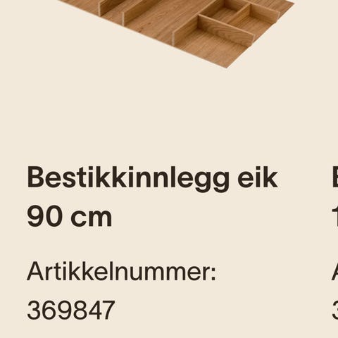 Ubrukt bestikkinnlegg til skuff på 100 cm.