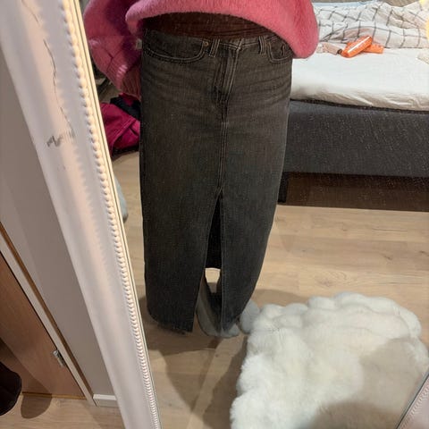 Grått maxiskjørt i denim fra Gina Tricot.